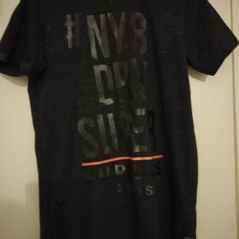 Superdry harmaa t-paita teksteillä. Teksteissä halkeamia, muuten hyvässä kunnossa.