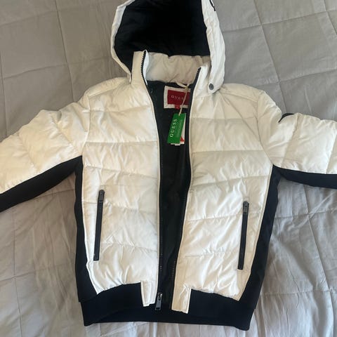 Guessin musta vuorellinen bomber takki. Uudenveroinen, jäänyt täysin käyttämättä kun ei ollutkaan sopiva. Ostettu ideaparkin myymälästä 199e.