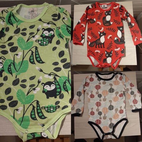 Lyhythihainen PAAPII-body on 96% puuvillaa ja loput elastaania, 80-koossa. Ostettu uutena suoraan paapiidesing-tehdasmyymälästä Kokkolasta. Saumat virheettömässä kunnossa, mutta ollut lemmikkitalous tuolloin.