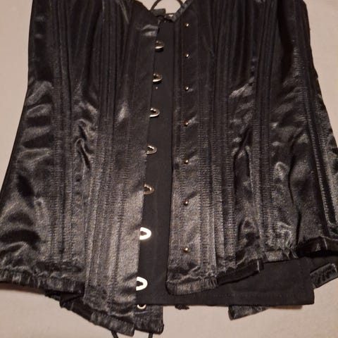 Uusi CorsetStoryn laadukas musta kauniisti muotoileva korsettipusero 3/4-hihoilla. Koko 26", vyötärön ympärykselle 73-77cm. Pituus tavanomaista korsettia pidempi eli ei vaadi korkeaa vyötäröä alaosalta ja sopii pitkäselkäiselle. Hyvin napakat tukevat luut. Hinta nettikaupassa 271€.