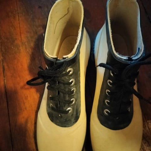 Lyhytvartiset kumisaappaat pehmeää kumia, muutamia kertoja ollut käytössä