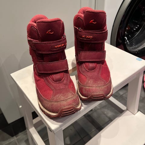Viking lasten talvikengät tytöille, koko 33. Kengissä on punainen väri ja ne on valmistettu kestävistä materiaaleista, joissa on lämmin vuori. Sopivat käytettäväksi kylmillä ja lumisilla keleillä.