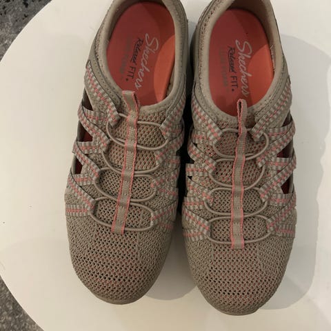 Skechers Bobs lenkkarit. Väri vaaleanpunertava/ruskea. Kangaspinta, ei verkkomateriaalia. Jonkun kerran kävelty ja havaittu liian isoiksi. Koko on 40, mutta Skechersit ovat väljää mitoitusta. Valmistajan ilmoittama 27 cm on koko pohjallisen mitta(siis myös se osa mikä nousee jo kantapään yli.) Leveähkö lesti. Jotain jälkeä pintaan tullut, mutta muuten kunto oikein hyvä.