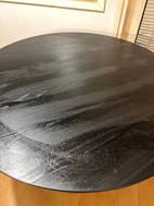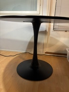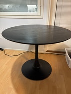Pyöreä ruokapöytä. Muutama jälki löytyy kannesta mutta muuten siisti ja ehjä.