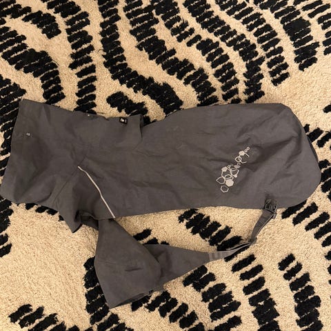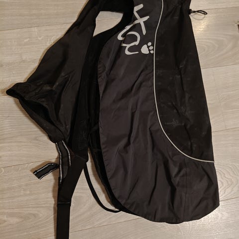 Lähes käyttämätön musta kevyt sateen ja tuulen pitävä takki verkkovuorella keskikokoiselle tai isolle koiralle.