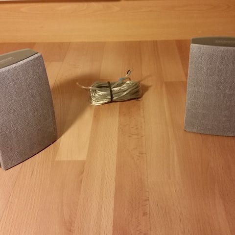Kolmitie kaiuttimet ruskealla puuviimeistelyllä. Kaiuttimissa on erilliset diskantti-, keskiäänialue- ja bassoelementit. Korkeus noin 60 cm. Soveltuvat kotikäyttöön äänentoistojärjestelmissä.
