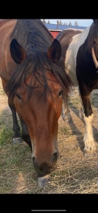 Ohjasajettu, käyty selässä, terveenoloinen tamma. Kiltti, nyt isossa laumassa pihatossa. Ei ole pelännyt isoa kaivinkonetta eikä traktoria. Säkä nyt about 150cm+, kasvanee vielä jonkunverta. Pysynyt langoissa.