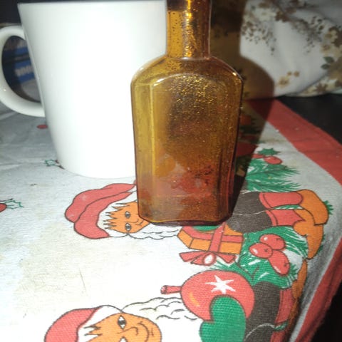 Vanha muovinen tynnyri / sinappipurkki, jonka korkeus noin 11cm ja leveys noin 9cm. Toisen purkin ilman tarraa ja väärällä kannella saa halutessaan mukaan.