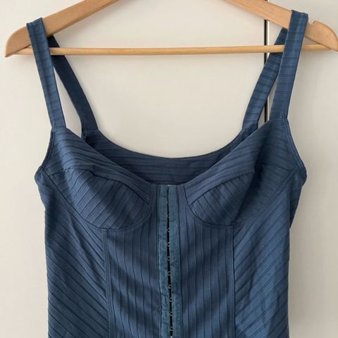 Kevyt korsettitoppi, vetoketju edessä, joustava nyöritys takana.