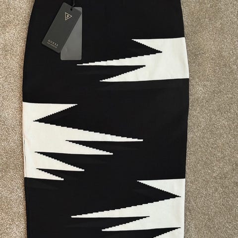 GUESS musta hame, koko M. Hameessa on koristeelliset napit sivuilla. Materiaali ei ole ilmoitettu. Naisten vaate.