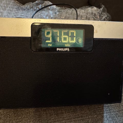 Pienen kokoinen Philips De luxe, toimii paristoilla, toimivuutta ei ole testattu, kanava säädin pyörii ja lanka liikkuu. Voidaan testata ja kun todetaan toimivaksi, hinta nousee.