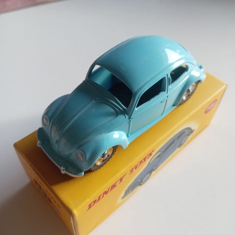 Harvainseksi tässä kunnossa käynyt peltinen lelurekka. Mukana molemmat alkuperäiset autot, Volkswagen VW Kupla ja Buick Regal Coupe (?).