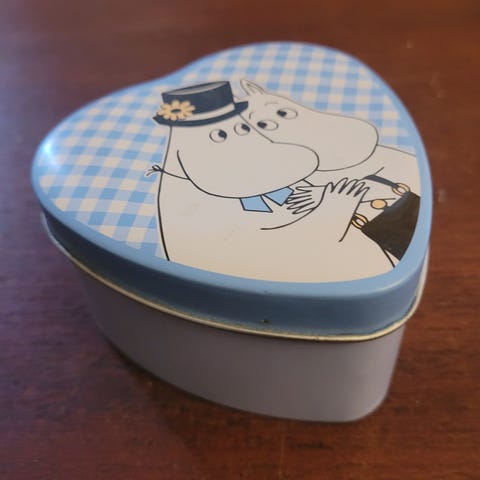 Tämä ihastuttava Muumi peltipurkki on iloisen värinen mielenkiintoisella kuviolla. Purkin mitat: kork. 13,5 cm, halkaisija 10 cm.
