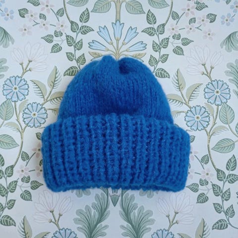 Rakkaudella itse neulottu turkoosiin taittava vihreä naisten yhden koon silkki-alpakka pipo, malli 1 (erona malliin 2 tässä päälaki sileää neulosta)