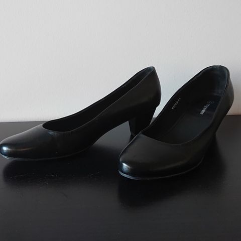 Korkokengät mustat, koko 42. Kengissä on matala korko ja koristeellinen solkikuvio etuosassa. Sopivat käytettäväksi erilaisissa tilaisuuksissa, joissa halutaan yhdistää mukavuus ja tyylikkyys.
