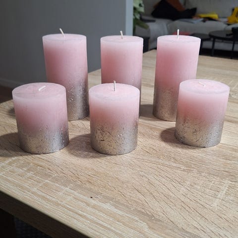 Kuusi kynttilää. Ei aikaisemmin sytytetty. Yhteishintaan 4€.