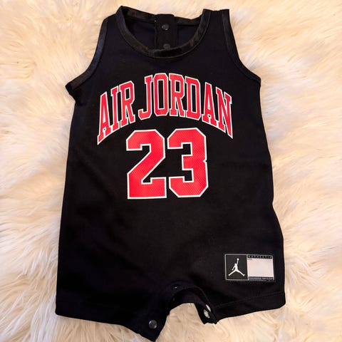 Nike Air Jordan vauvan musta body, koko 6-12 kk (68-80 cm). Hyvä kunto, vähän käytetty. Pientä vaaleaa nöyhtää tullut pesukoneesta, ei yritetty poistaa.