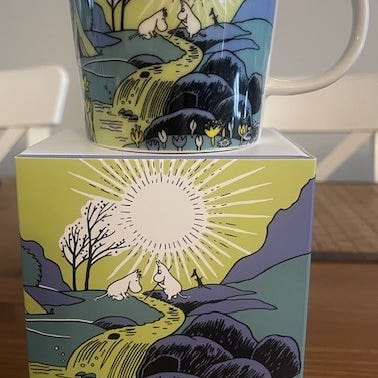 Arabia Moomin Muumimuki 0,3 litran posliinikuppi, jossa on monivärinen Muumi-aiheinen kuvitus. Mukin korkeus ja halkaisija soveltuvat päivittäiseen käyttöön. Pakattu alkuperäiseen lahjapakkaukseen.