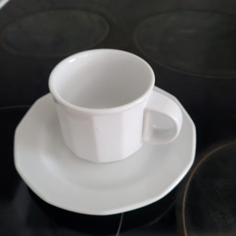 Ehjät ja siistit Arcoroc merkkiset kahvikupit ja kermakko