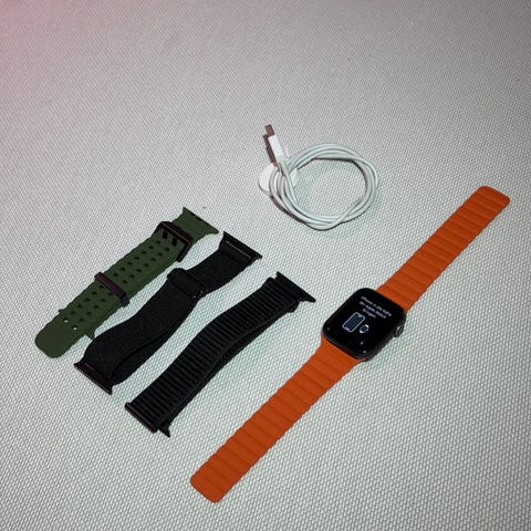 Myydään siisti 44 mm Apple Watch series 6. Mukana 2 m magneettinen latauskaapeli.