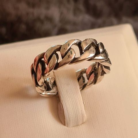 Hopeasormus (R27). Sormuksen koko 17,2mm. Sormuksen ympärysmitta 12x22mm ja paksuus 7mm. Paino 7g. Kirjelähetys 3€.