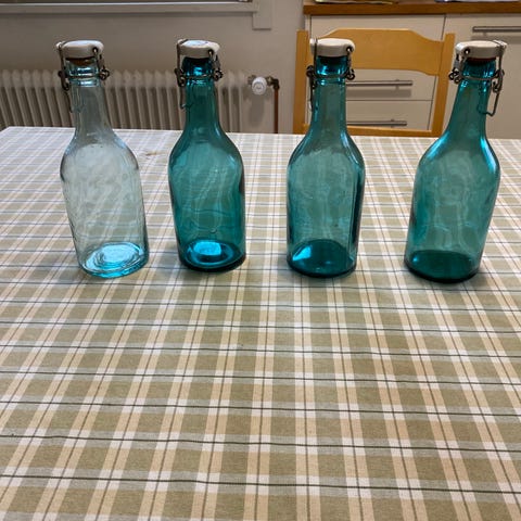 Vanha limsapullo vihertävää lasia. Etiketissä tiedot: Virolahden vesitehdas, karpalo limonaadia, Virolahti, puhelin 93. Voisi olla peräisin noin 1940-tai 1950-luvulta. Pullo on ehjä.