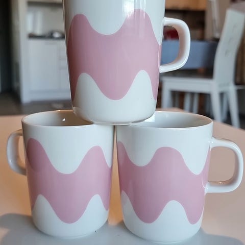2 kpl Lokki-mukeja 2,5 dl vaaleanpunaisella juovalla tosi kauniissa Marimekon lahjapakkauksessa Liikun alueella Lahti-Heinola-Mikkeli-Savonlinna-Parikkala tai voin lähettää Toridiilillä tai ilman. Hinta yhteensä paketteineen