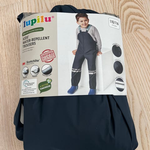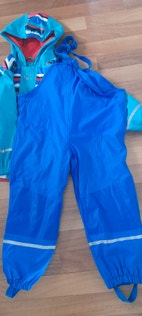 Myydään vuorillinen Lupilu-merkin kurapuku. Takki ja henkselihousut. Hyvä kunto.