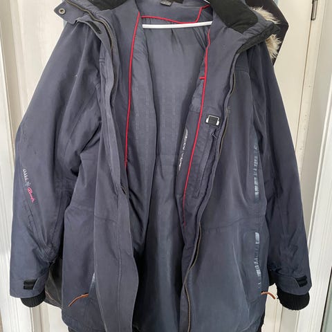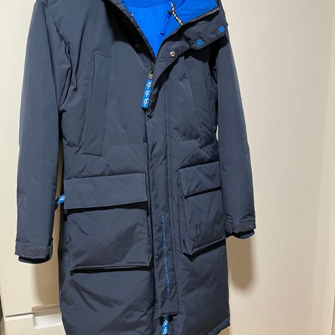 Myydään vähällä käytöllä ollut miesten untuvatakki irrotettavalla aidolla turkis somisteisella hupulla.