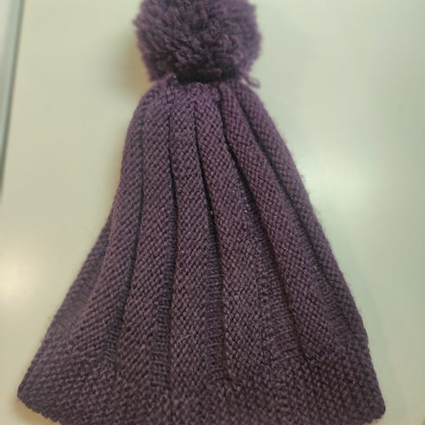 Käsin neulottu villapipo. Langasta hiukan kimaltavaa. Naisten koko