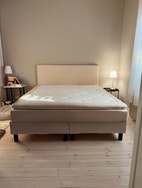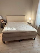 Sängyssä ei ole käytön jälkiä. Otettu juuri tekstiilipesurilla puhtaaksi. Patjat edelleen todella hyvässä kunnossa.