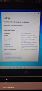 Eli kuvan tietokone, käyttis Windows 10, ja kuvista löytyy speksit, akku täysin loppu, mutta verkkovirran kanssa toimii moitteetta kyllä