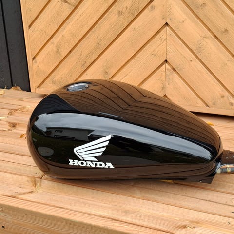 Eli Honda cb 100 alunperin, kuitenkin ollut myös vanhassa suzukissa ja käsityö ihminenhän laittaa sen vaikka keinuhevoseen...
