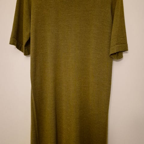 Oliivinvihreä alpakanvillasta 70% ja mulberry silkistä 30% koostuva moitteettomassa kunnossa oleva neulemekko. Ovh 229