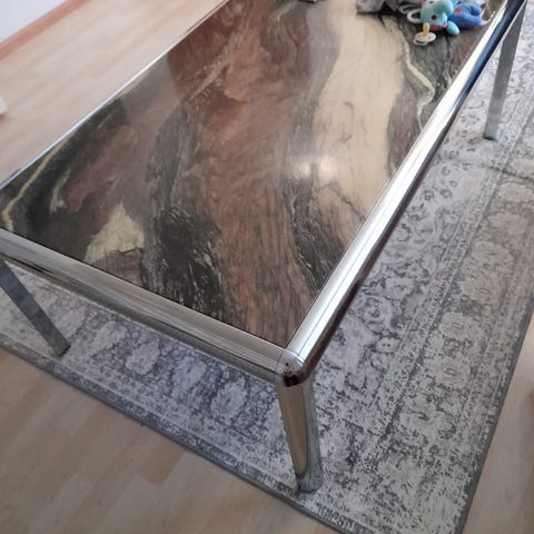 Marmoripöytä, joka ollut sohvaryhmän vieressä. Painaa reilusti.