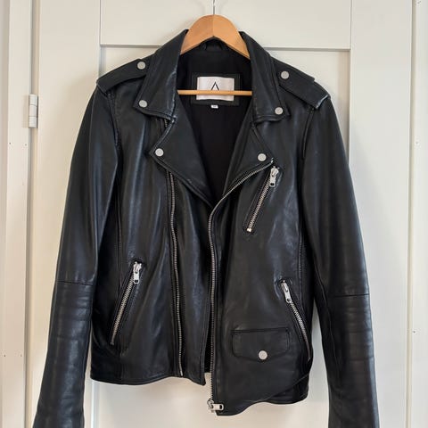 Käyttämätön musta nahkatakki