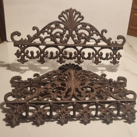 Kolme naulaa sisältävä valurautainen naulakko, jossa kauriin kuva.