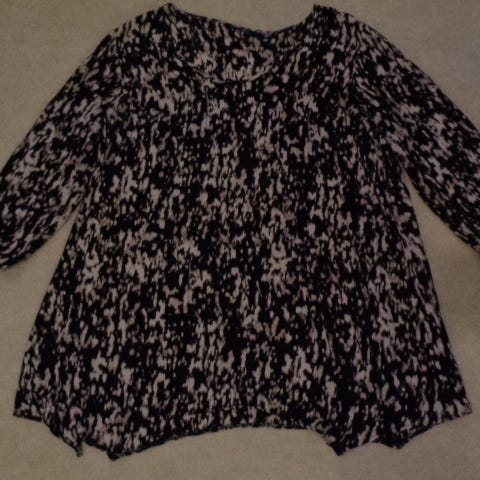 Tunika kokoa 40. 100% viskoosia. Pituus niskasta helmaan n. 90 cm.