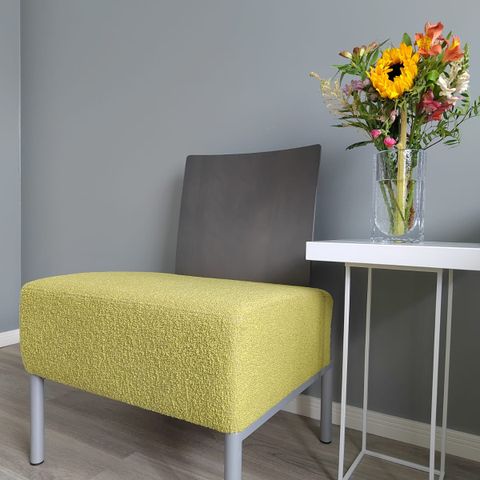 Istuimen väri vaihtelee kauniisti valaistuksen mukaan: taittuu limenvihreästä syvään sinapinkeltaiseen.