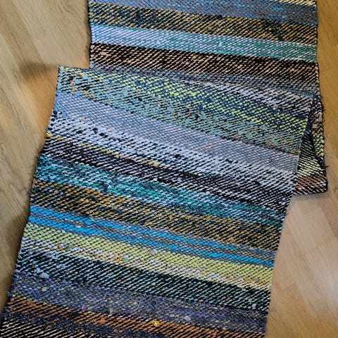 Itse kudottu perinteinen värikäs räsymatto. Tukeva ja siisti, ollut hyvin vähän käytössä, pesun jäljiltä.