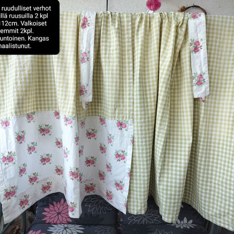Hakusana: valoverho , valoverhot , sivuverhot, kukallinen , niittykukat , kesä , kevät , syksy , mökki sisustus, mummonmökki , romanttinen , pinkki , liila , vihreä
