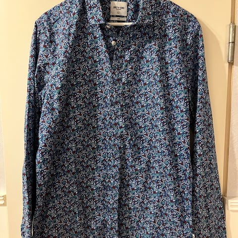 Myydään erittäin hyväkuntoinen vain muutamia kertoja käytössä ollut kirjava kukallinen kauluspaita. Koko L/slim. Merkki Only &sons.