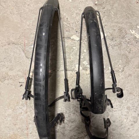 Jollekkin näpertäjälle kasa lokareita. Näyttäis olevan 42mm leveä 28” setti ainakin ja 61mm leveä setti. Kaks etulokaria 61mm ehkä 26” ja kasa aisoja ja jotain kiinnikkeitä.