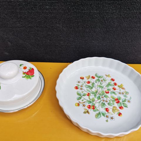 Mansikkalautasia 5kpl,hinta 12 euroa 1 kpl.Piirakkavuoka 30 euroa.Voin postittaa.Ei ole käytössä ollut.