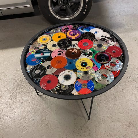 Käsintehty pöytä, jonka kansi on valmistettu viinipullonkorkeista ja päällystetty kirkkaalla epoksihartsilla. Pöydän jalat ovat mustaa metallia. Pöydän koko on keskikokoinen, sopii esimerkiksi olohuoneen tai oleskelutilan käyttöön.