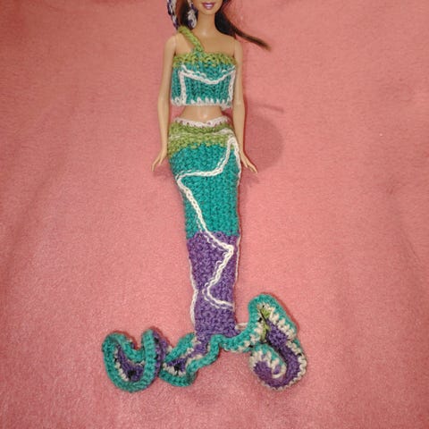 Vintage merenneito asu. Kulumaa topissa ja hameessa. Myynnissä pelkkä asu, nukke ei tule mukana.