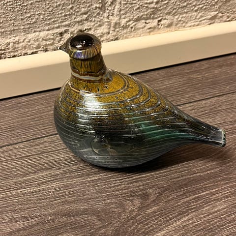 Vintage loistava lasilintu. Design Oiva Toikka, Nuutajärven Lasi.