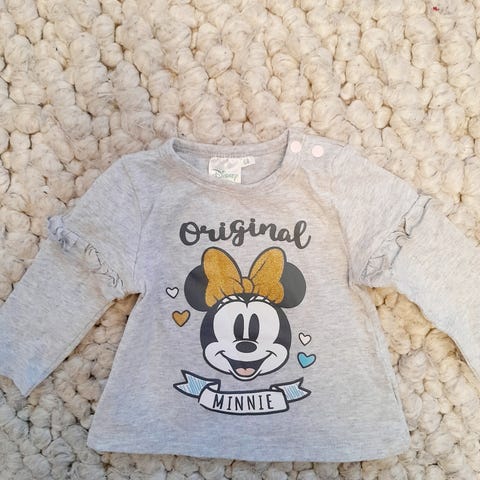 Disney babyn vaaleanpunainen röyhelöpaita ja housut. Kokolapussa 68, mutta mielestäni ennemminkin kokoa 62.