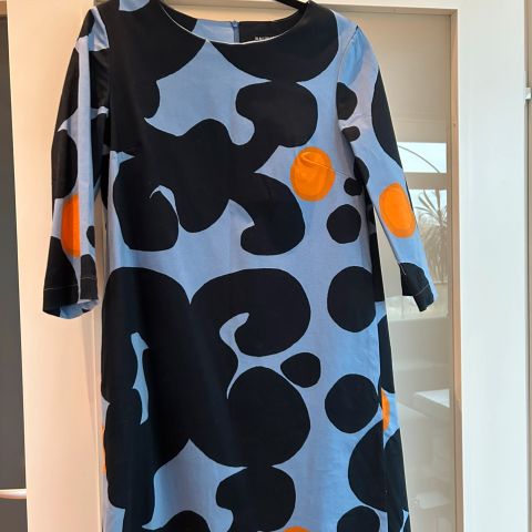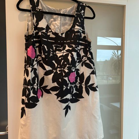 Marimekko Julihuld Pioni toppahame, koko 42, väri oranssi-valkoinen. Hameessa on vetoketjusuljenta molemmilla sivulla ylhäältä alas saakka. Kerran ollut hetken päällä ja liian pieneksi todettu, eli käytännössä kuin uusi.
