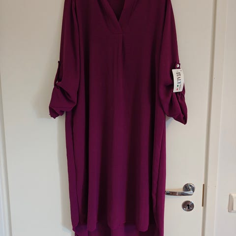 Näyttävä Michela Mii-mekko peikonlehtikuosilla. Made in Italy. Helma kaarrettu. Reilu malli. Koko XL, mutta on mielestäni suurempi. Malli sopii monen kokoiselle. Mitat: kai-kai 72cm, olka-helma 114cm.